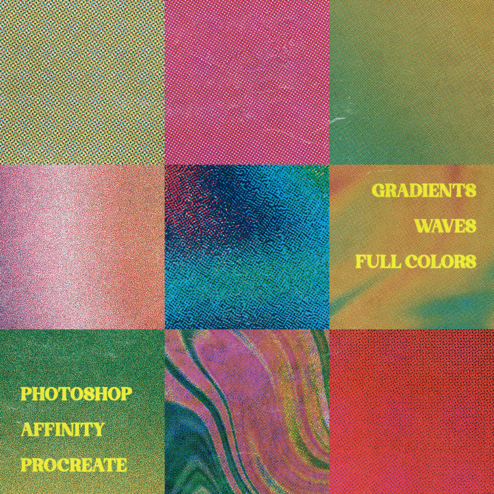 Here you can find 30 PNGs of colors, waves, and gradients with different printing methods, ready to use in your editing software of preference.